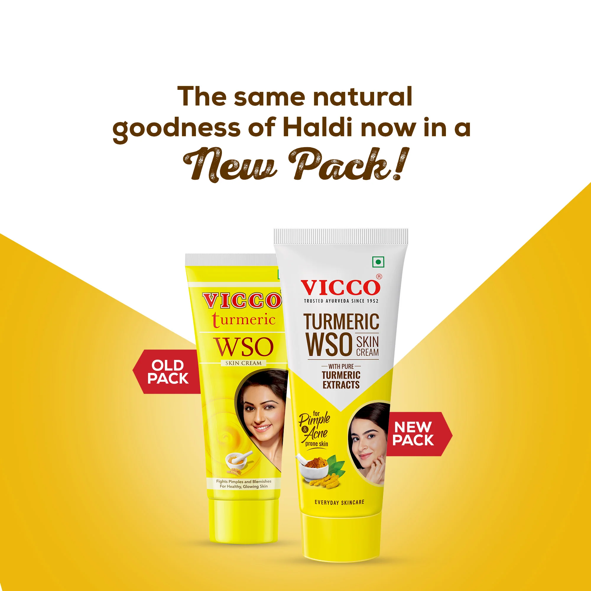 Vicco Turmeric WSO Cream is specially formulated to fight pimples and acne. Enriched with the power of turmeric, it reduces redness, controls bacteria, and prevents breakouts for clear and healthy skin. Hence, Haldi hai toh healthy hai.